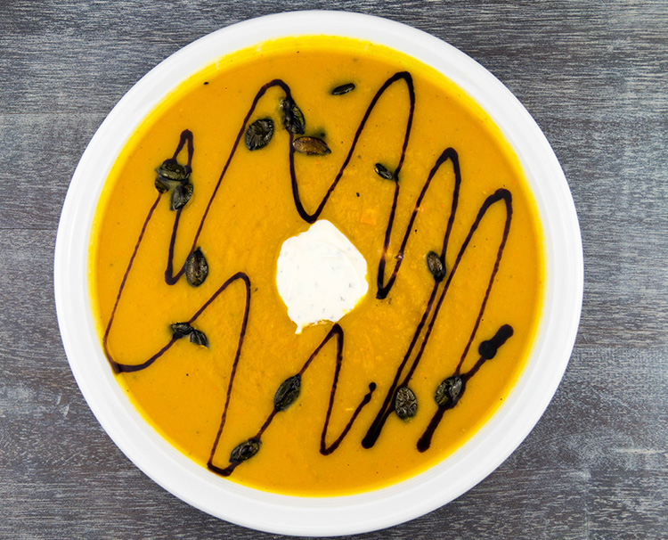 The pumpkin soup recipe that follows specifically mentions the Hokkaido variety, also known as the red kuri squash. As its name suggests, Hokkaido pumpkins have been cultivated in Japan, and particularly on the island of Hokkaido, where they grow in volcanic soil, since the late 19th century – although it is believed that all squash originated in MesoAmerica.