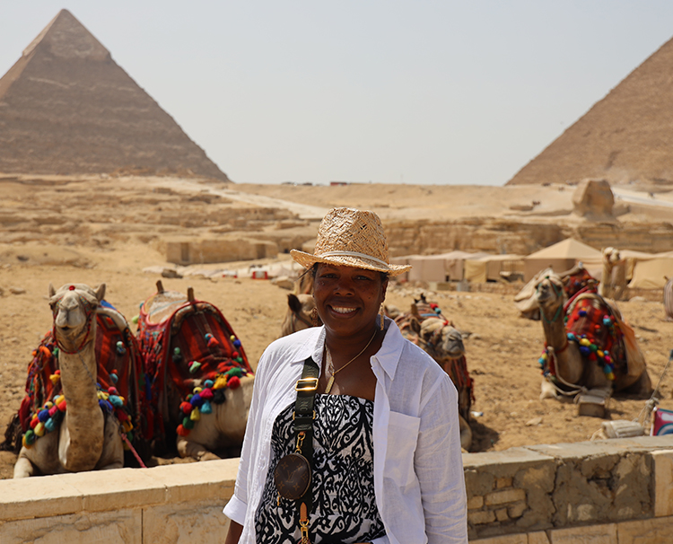 At the top of Denice’s list was our Secrets of Egypt & the Nile Soulful Experience in 2024, but she had a dilemma. “I was supposed to be graduating around the time of the departure,” she said, “but then I thought, wouldn’t it be wonderful to ‘graduate’ in Egypt where it all started, where our ancestors were originally from?”