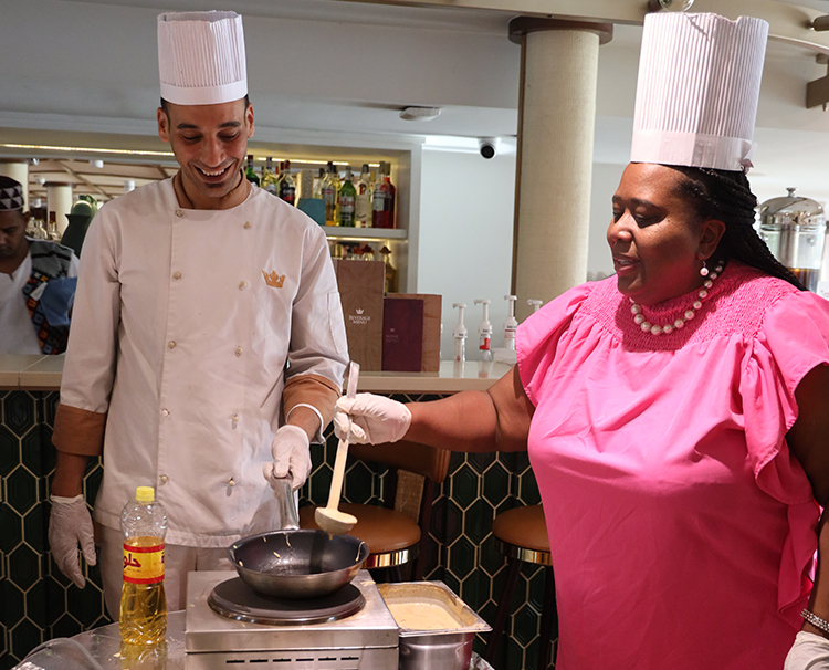 Christina happened to be celebrating her birthday when she and James arrived early in the morning to the hotel. To their amazement, multiple members of the Nile Ritz-Carlton staff came up to their room to serenade her with a personalized birthday cake. After that delightful surprise, Christina’s first evening in Cairo was full of anticipation. “There were people who looked like me,” she said. “It was nice for us all to be experiencing the same thing for the first time.”