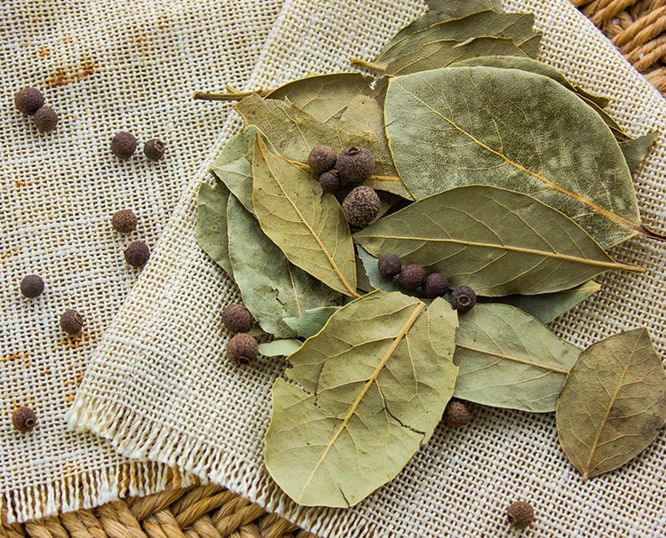 Preheat oven to 335°F.Cut incisions into the onions and stick thyme twigs into it; afterwards stuff the onions with bay leaves and cloves. Bring water to a boil, add the stuffed onions and poach the ham until temperature reaches 185°F until three-fourths done. Afterwards, carefully remove the rind from the ham, then cut incisions in a crisscross manner into the fat layer. It should look grid-like with spaces of 1 cm in between. Prick in the cloves evenly at the cut surface. Wash the marjoram, pick the leaves, pat dry and chop finely. Then mix all ingredients together for the glaze.