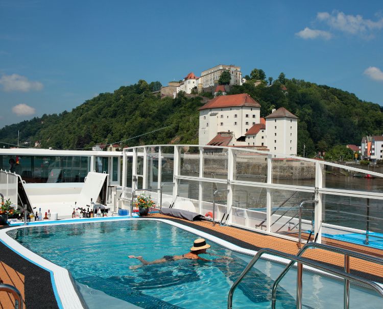 Our ships offer the luxury of space for an average of just 156 guests. We have some of the largest staterooms on the rivers. In fact, our extraordinary AmaMagna offers the largest and most luxurious suites on the Danube River (with full balconies) ranging from 355 sq. ft to 710 sq. ft. In addition, our open-air Sun Decks are expansive, with space for a walking track, pool or whirlpool (or both on AmaMagna), as well as a bar, sitting area and ample space for our host-led fitness classes as part of our complimentary Wellness Program