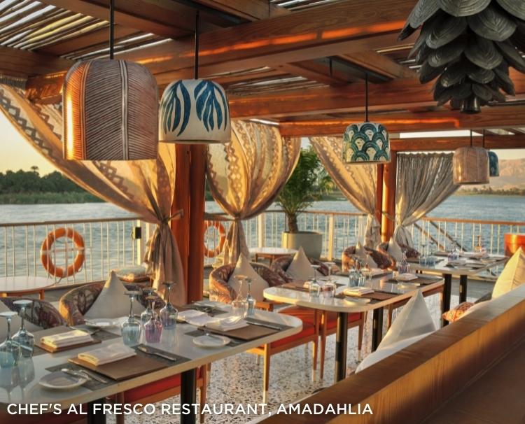 17. Contemporary, destination-inspired décor. Each ship in our family is unique, whether you are sailing on board our distinctive AmaDara, with its intricately carved French colonial-style dark woods and artifacts created by local artists, or our AmaDahlia, with its subdued tones and lovely Chef’s Al Fresco Restaurant.