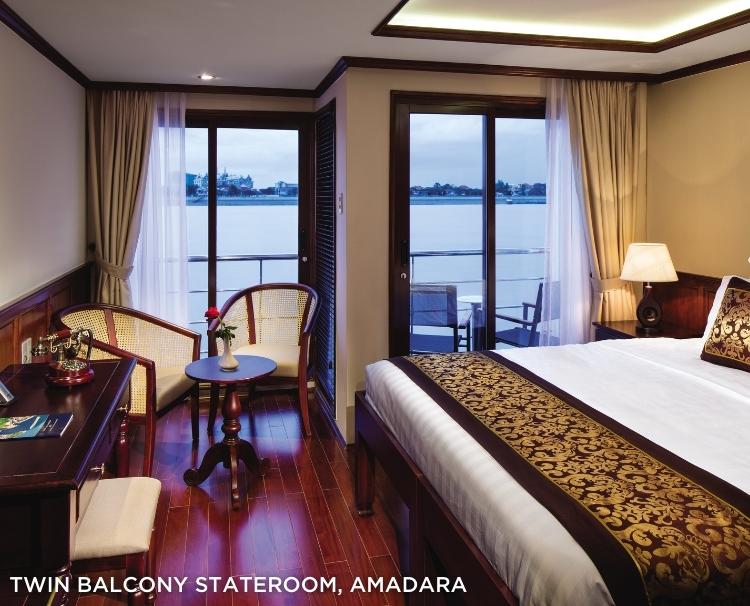 1. Our signature view-enhancing twin-balcony staterooms where both a French balcony and an outside balcony await with fresh air and the everchanging landscapes outside your window, available on most ships in Europe, our ships in Colombia and Egypt, and on board AmaDara on the Mekong River.