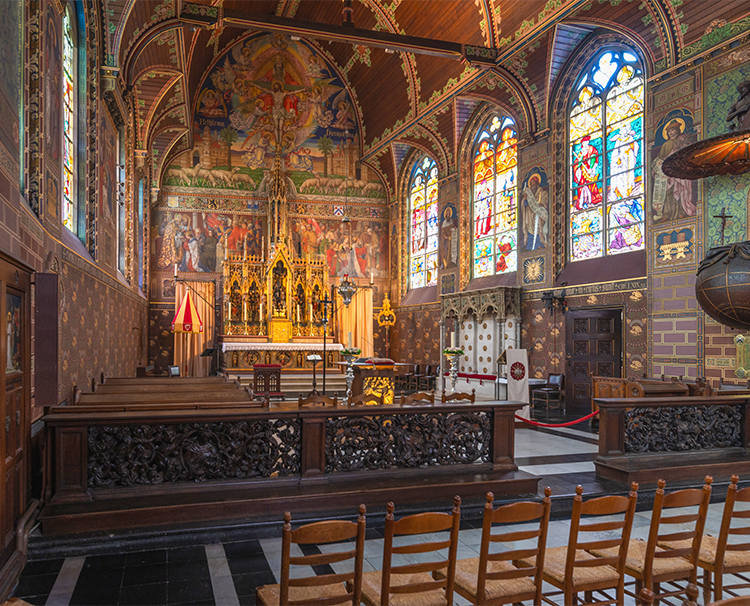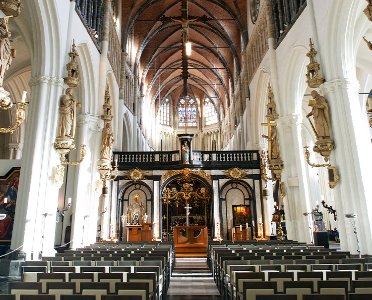 Today, the relic is held inside the upper Basilica, a stunning Gothic chapel originally constructed in the 15th century. Behind the altar, visitors will find a wall painting depicting the legend of the arrival of the Holy Blood relic in Bruges.
