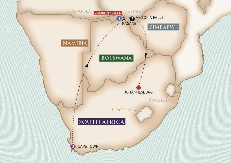 Experience the beauty and natural wonders of iconic Cape Town; get up close to animals in their natural habitat; and explore one of the “Seven Wonders of the World.” Spend three nights in Cape Town, discovering its many treasures with visits to Cape of Good Hope, Boulders Beach and Table Mountain. You also have a choice to visit the renowned Cape Winelands, or tour famous Robben Island. Next, fly to Victoria Falls and head west to the Botswana and Namibian borders to embark on your Chobe River safari cruise through the wondrous Chobe National Park, home to one of Africa’s densest populations of wildlife. Encounter elephants, giraffes, leopards, zebras and buffaloes on excursions by boat and open-air vehicles. Conclude your journey with two nights at the majestic Victoria Falls. You also have the option to extend your trip in Johannesburg, following in the foot-steps of Nelson Mandela.