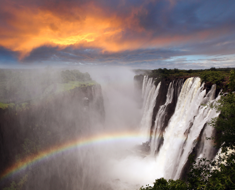 Enjoy a morning cruise during breakfast and be on the lookout for wildlife. Afterward, transfer to the legendary Victoria Falls, one of the world’s greatest natural wonders. Spend the afternoon exploring the town or experience one of the many activities offered at your hotel. Later this afternoon, join a cocktail reception with appetizers aboard a vintage steam train and make your way to the Victoria Falls Bridge to watch the sunset over the Falls. (B)