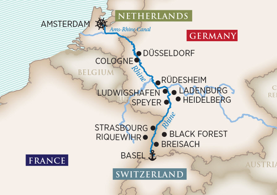 Contoured by vineyard-clad hills and castles from yesteryear, the legendary Rhine captivates – and we invite you discover the flavor of this tantalizing region on a Celebration of Wine River Cruise with enhanced epicurean experiences included in the price of your cruise. Immerse yourself in France’s Alsace region in its welcoming capital, Strasbourg, and its priceless gem, Riquewihr. Discover Breisach, rising above the vineyards of the Rhine, and Freiburg, one of Germany’s sunniest cities. Fabled towns lost in time present you with the chance to taste local flavors—Rüdesheimer coffee and legendary German beer—and to touch history up close with guided hikes and bike rides. From Amsterdam’s colorful canals to Germany’s Black Forest, journey into the heart of the destinations you visit.