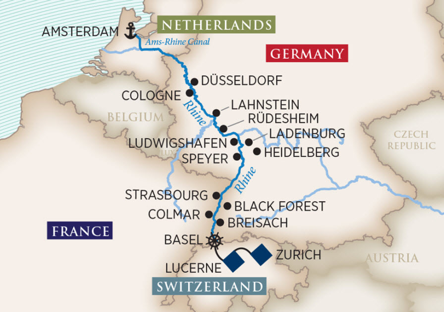 Grand cities blend in perfect harmony with their historic past and their progressive future. Zurich’s medieval houses, narrow lanes and town halls from the Renaissance period offer a striking backdrop to its trendy and ultra-modern metropolis. And Amsterdam’s Golden Age melds seamlessly with its lively cafés, exciting nightlife and glorious museums. Inspirational towns have given way to great stories, poetry and music, like Heidelberg, where Mark Twain wrote A Tramp Abroad. Timeless traditions remain intact—from the brewing of Germany’s legendary beers, to the making of Rüdesheimer coffee. Take a front-row seat on an enchanting journey that takes you along the Rhine and through its designated UNESCO World Heritage Site with its 40 castles strung like pearls on its river banks and to magnificent cities and charming villages alike.