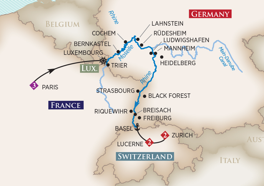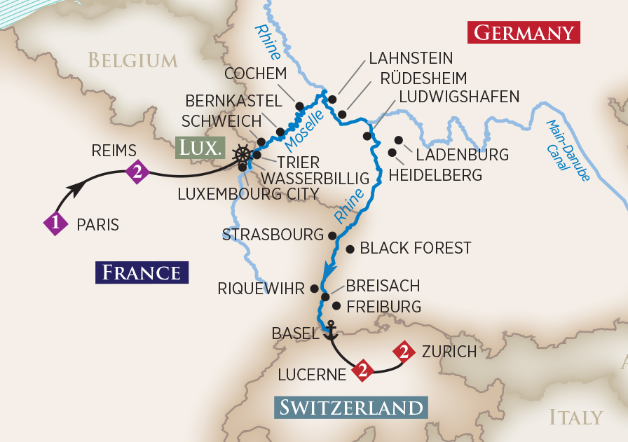 Paris and Zurich provide the perfect beginning and ending to your splendid journey along two of Europe’s most alluring rivers, the Rhine and Moselle. Discover the celebrated Champagne region of France in Reims, the unofficial capital of Champagne. In between, expand your imagination in fairytale villages—enchanting Cochem where folklore and history come alive in every street, and in well-preserved Bernkastel with its medieval Market Square and half-timbered houses. Whimsical fantasies abound at Siegfried’s Mechanical Musical Instrument Museum and at the Palace Gardens of Schwetzingen, a cultural heritage site of European significance with more than 100 sculptures scattered throughout its surprising landscape. Blend German heritage with Italian in Trier, with its Roman Imperial Baths and the Porta Nigra; and with French heritage in Strasbourg, and you have the most splendid journey.