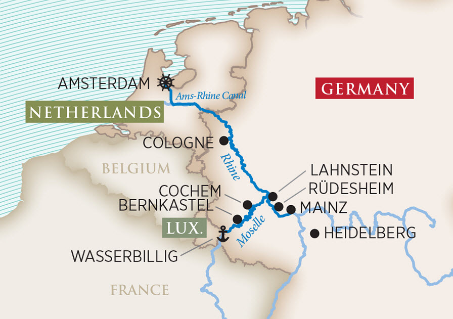 Board the ship for your Vineyards of the Rhine & Moselle Wine Cruise. (D)