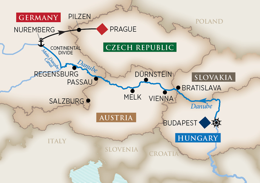 Experience the celebration of new life and renewal along the storied Danube River. Cruise from Budapest to Nuremberg in your stunning ship adorned in Easter decor, taking in centuries of art, culture and history alongside the spring festivities. Along the way, visit magnificent cathedrals and Baroque abbeys, sample Vienna’s sinfully rich Sacher-Torte cake, experience the breathtaking scenery of the Wachau Valley winemaking region and traverse Europe’s Continental Divide, all while enjoying onboard activities to celebrate the spring holiday season.