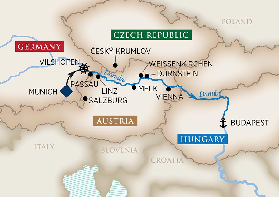 Experience timeless holiday traditions and elegant pageantry in five countries—Hungary, Slovakia, Austria and Germany. Let iconic capital cities—Budapest, Bratislava and Vienna—decked in holiday finery with glittering Christmas trees illuminated by thousands of lights, bells pealing from cathedral towers and children dressed as angels singing Christmas carols, dazzle you. Wander the stalls of Europe’s most traditional and enchanting Christmas Markets, including Regensburg and Salzburg, shopping for handcrafted toys and gifts, sipping hot mulled wine and inhaling the fragrance of gingerbread and roasted chestnuts. Cherish all the glory and magic of the season in grand European style as you cruise along the Danube during this festive time of the year.