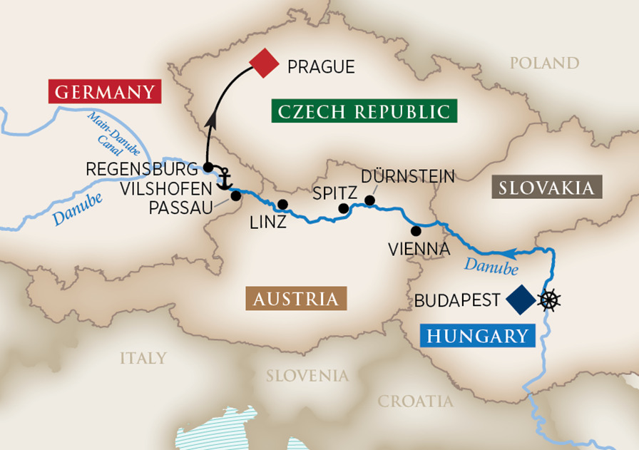 Depart the ship and drive to Regensburg, one of Germany’s best-preserved medieval cities, which you’ll discover on a guided walking tour. After touring Regensburg, continue on to Prague. (B)