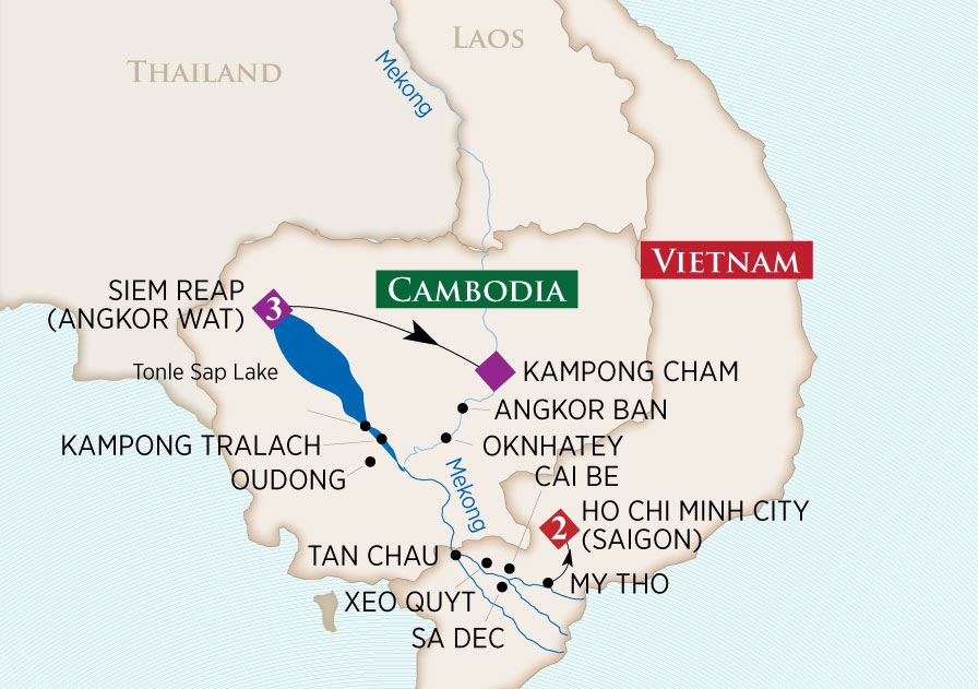 Start your journey Siem Reap, Cambodia the gateway of the ancient Khmer empire Spend three days touring the temples of Angkor Archeological Park, a UNESCO World Heritage Site before embarking your Mekong cruise in Kampong Cham. Visit rural villages, local workshops and markets, historic pagodas and a Buddhist monastery along the way. Overnight in Phnom Penh capital of Cambodia.