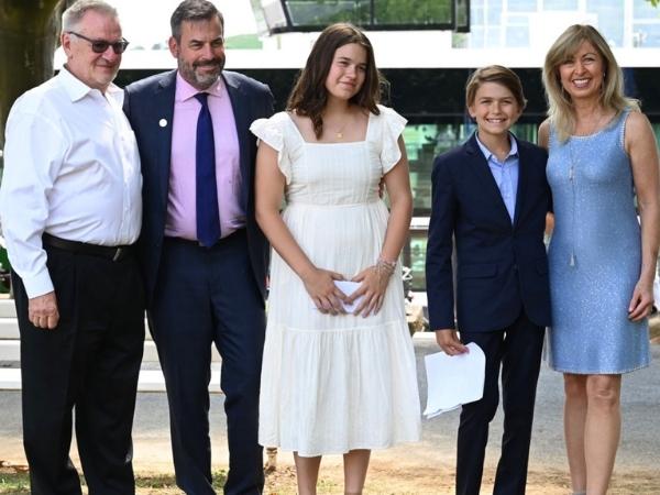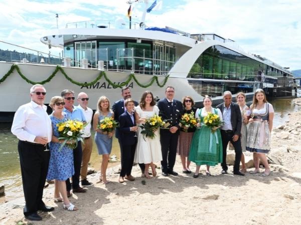 Christenings of new ships are always festive occasions and the christening of AmaLucia on July 31st in Rudesheim, Germany was a particularly joyful event as our youngest ever Godparents, Will (11) and Riley (14) Farmer performed the traditional naming ceremony followed by the good luck breaking of the champagne bottle on the hull of the ship (view the video). Our guests on board joined Rudi, myself and Captain Arjan along with Rudesheim Mayor Klaus Zapp and other local dignitaries in welcoming this newest addition to the AmaWaterways fleet of 25 ships. Will and Riley, children of our friend and business partner Colin Farmer, were chosen to do the honors as they proposed the name for this new ship following a river cruise we shared together in 2019. Multilingual and multitalented, their love of travel, openness to change, respect of cultural diversity and their deep concern for protecting the environment really personify the values that AmaWaterways holds dear. By choosing this young brother and sister team as Godparents for AmaLucia, we are celebrating our commitment to families and the important life lessons that travel has to offer guests of all ages.