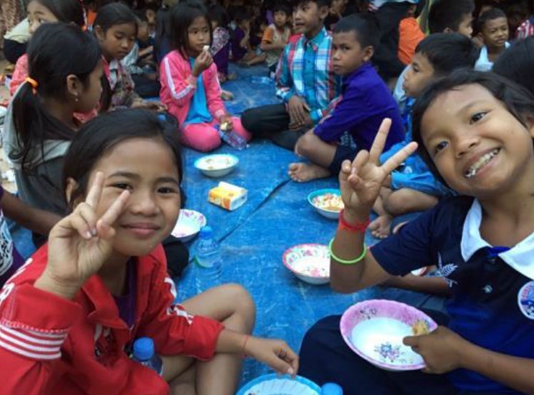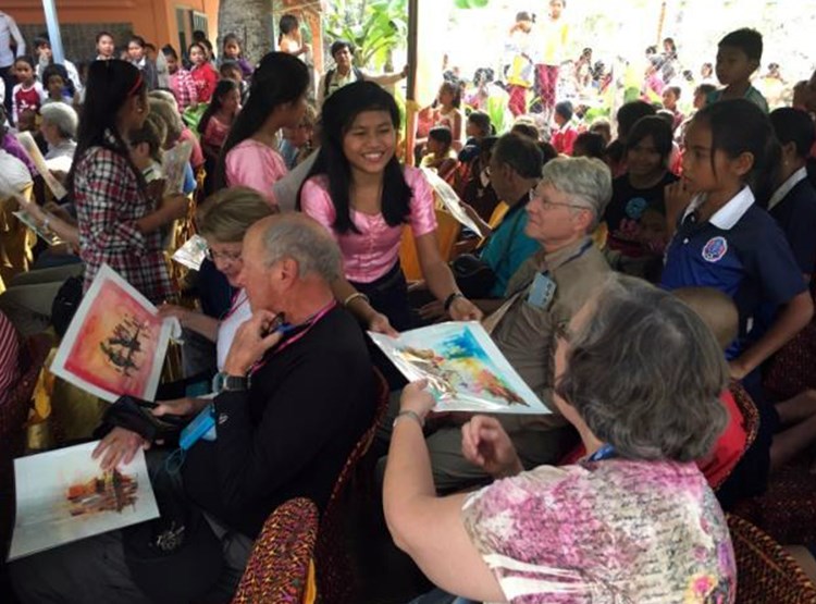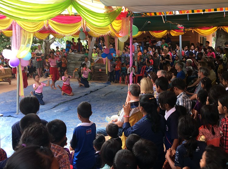 There are now 1,300 students registered for the program, and it would seem that they all turned up for the festivities that included a Traditional Blessing Dance, fun games and a delicious lunch of Khmer Chicken Curry, fresh white noodles and French bread all prepared by a group of village volunteers. The students practiced their English while passing out local artwork as souvenirs to the delight of our AmaWaterways guests—many of whom joined in the dancing before reluctantly boarding the buses taking them back to AmaDara.