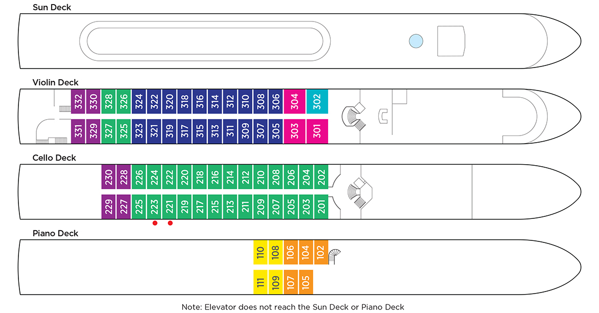 Relax and rejuvenate in spacious, luxurious staterooms with plenty of amenities. Most feature French balconies that afford stunning views of the scenery along the river.